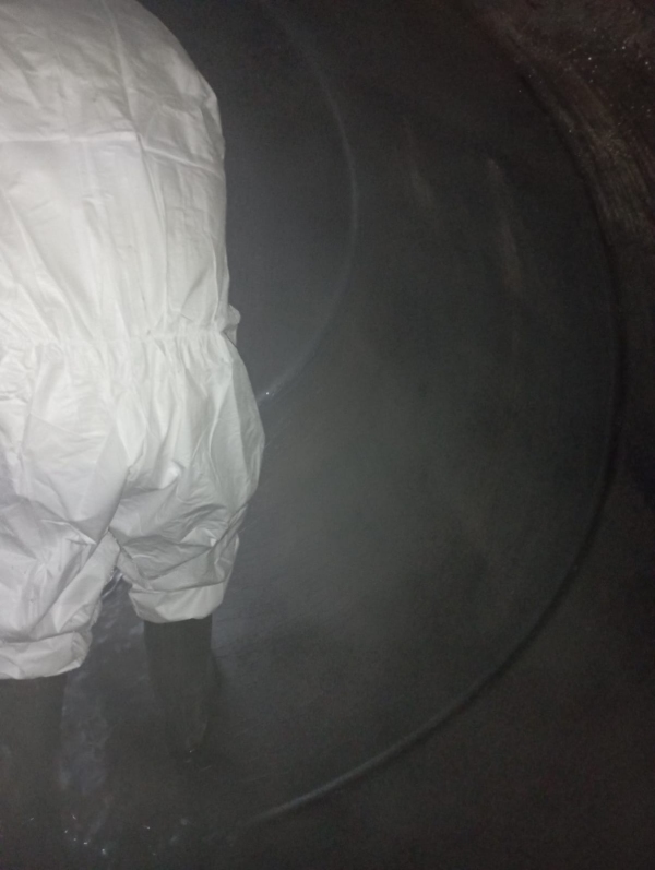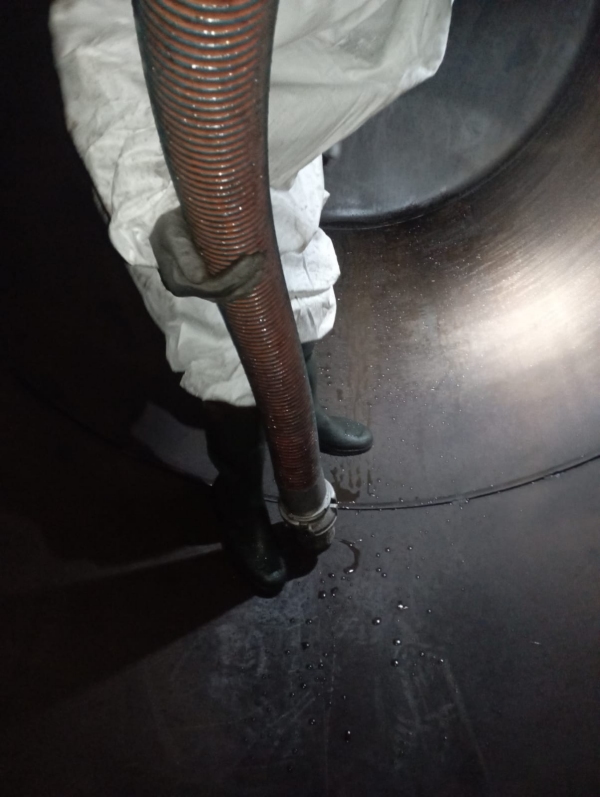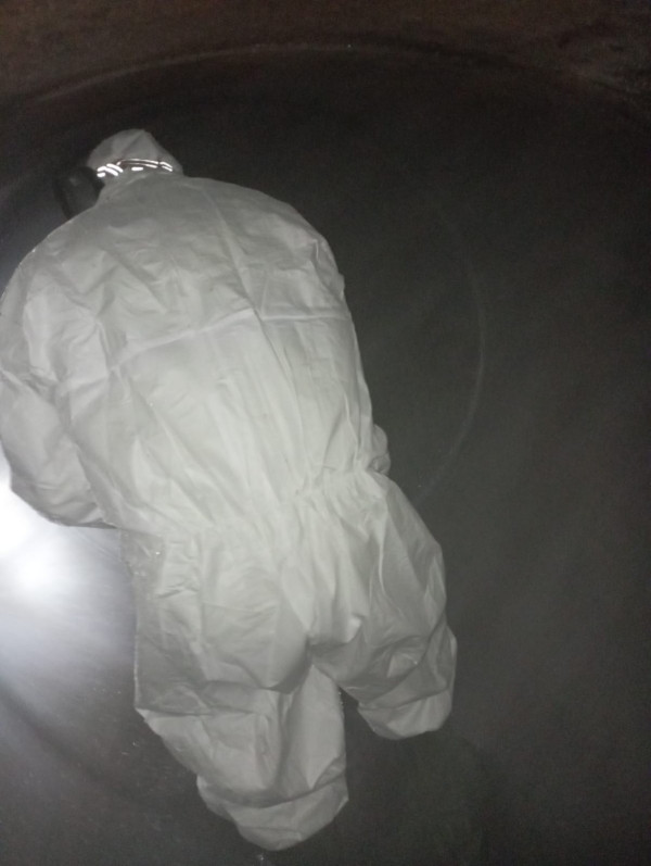 Nous réalisons ensuite des tests afin de vérifier qu’il n’y a plus de trace de résidus de gaz. C’est alors que nous procédons au curage et que nous examinons l’état de la cuve et procédons à un essuyage de la cuve avec un torchon pour éviter l’humidité.